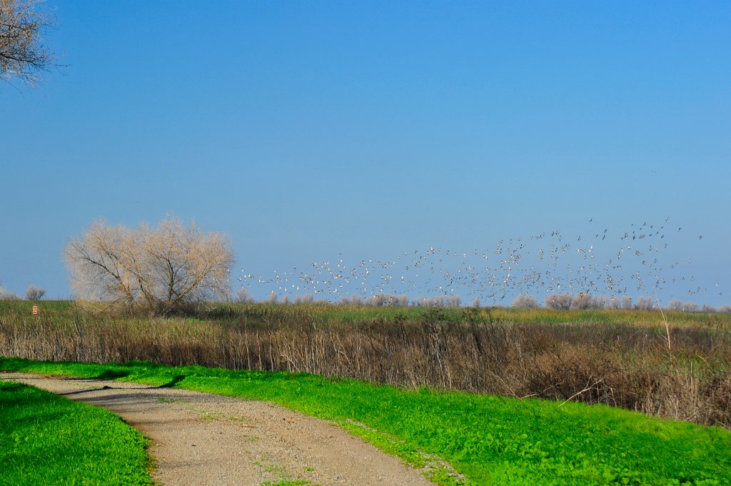 Laura, Zephyr and I took advantage of a crystal-clear and cool winter’s day to visit the new San Luis National Wildlife Refuge visitor center near Los Banos. The refuge first came into existence in the 1960’s and now provides an engineered and irrigated sliver of natural habitat that once existed along the entire stretch of the San Joaquin River prior to farming. We saw tens of thousands of birds and I can’t explain in writing the thrill of hearing a flock take off and land all at once. A better descriptor of what can be found at the refuge is quoted from the SLNWR website: “The San Luis National Wildlife Refuge encompasses over 26,800 acres of wetlands, riparian forests, native grasslands, and vernal pools. A thriving population of the endemic tule elk is showcased by one of three auto tour routes. The Refuge is host to significant assemblages of birds, mammals, reptiles, amphibians, fish, insects, and plants; some of which, such as the California tiger salamander, the long-horned fairy shrimp, and San Joaquin kit fox, are endangered species.”