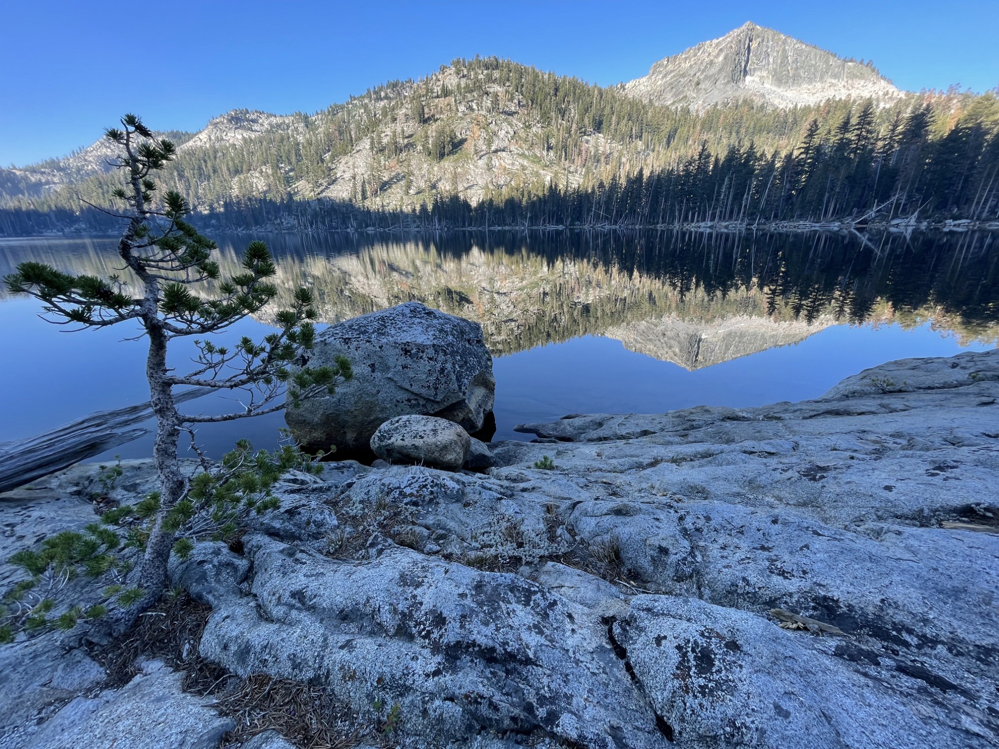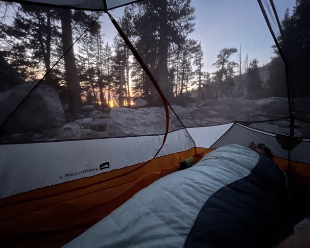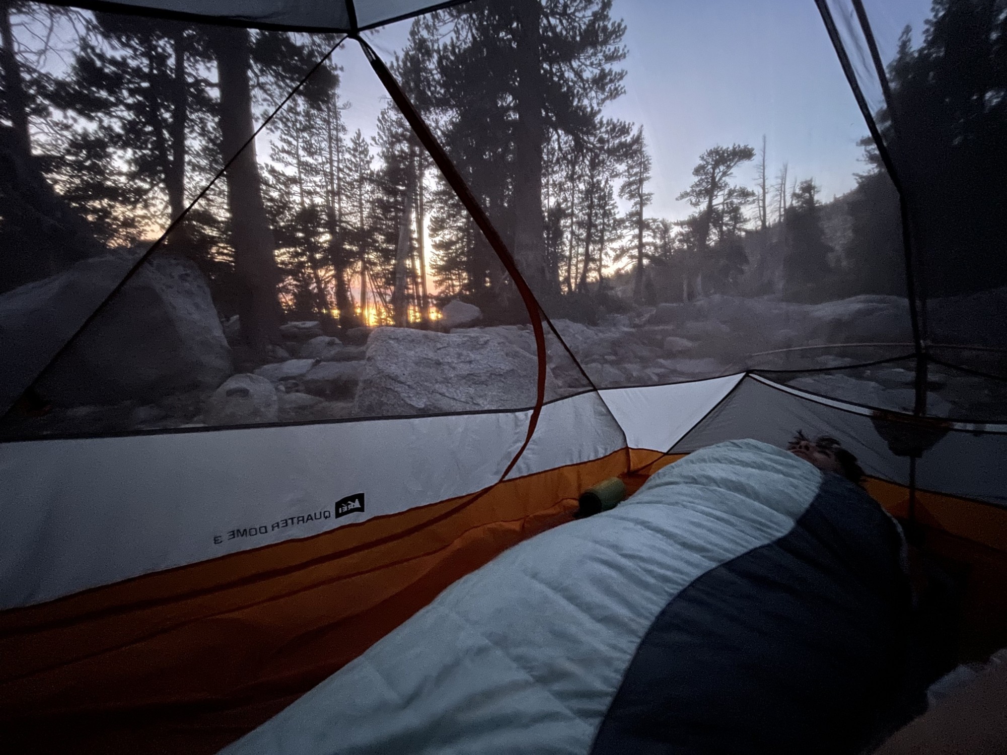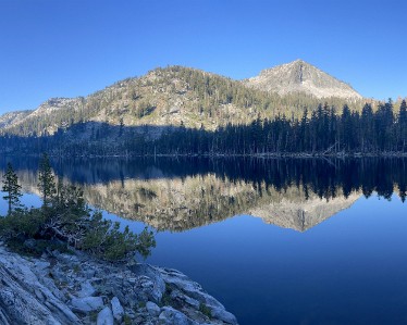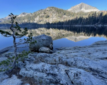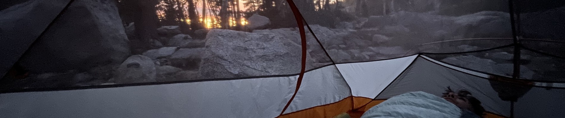 Sunrise from the tent. Time to see if the fish were biting. Phone pano of Stoney Ridge Lake. No Trout Phone pano of Stoney Ridge Lake. No Trout Phone pano of Stoney Ridge Lake. No Trout. But a glacial erratic! Hitting the trail early. Action shot! Steve angles for a fish, bit no luck. Just listen to the birds! Crag Lake dace? Lily! A weird tank we found a few hundred feet off the trail. Labels Day 2 - SRL to Jakes PeakDay 1 - Meeks Bay to Stoney Ridge Lake