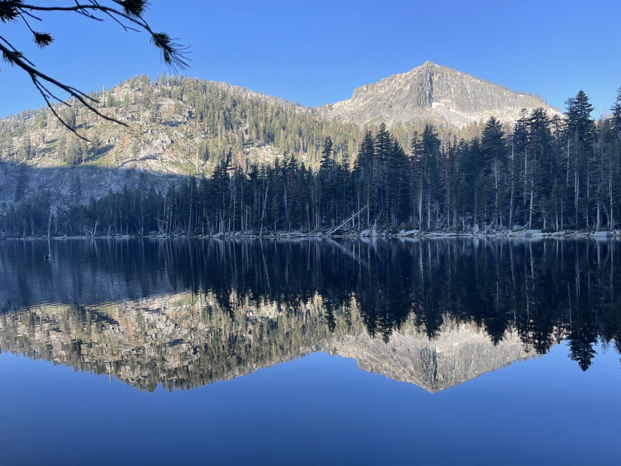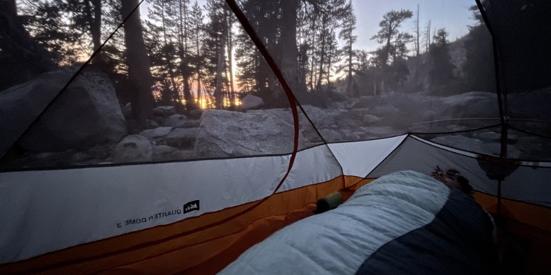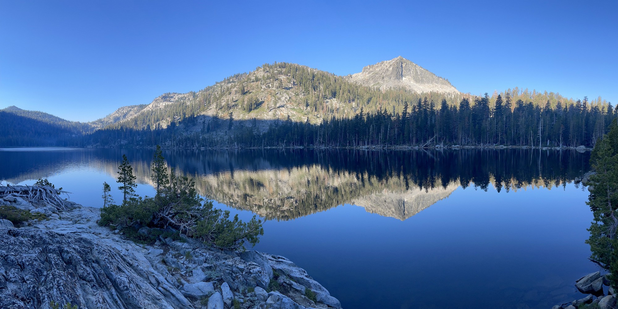 Sunrise from the tent. Time to see if the fish were biting. Phone pano of Stoney Ridge Lake. No Trout Phone pano of Stoney Ridge Lake. No Trout Phone pano of Stoney Ridge Lake. No Trout. But a glacial erratic! Hitting the trail early. Action shot! Steve angles for a fish, bit no luck. Just listen to the birds! Crag Lake dace? Lily! A weird tank we found a few hundred feet off the trail. Labels Day 2 - SRL to Jakes PeakDay 1 - Meeks Bay to Stoney Ridge Lake