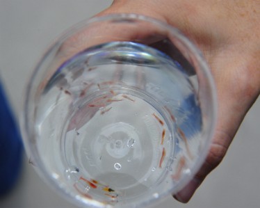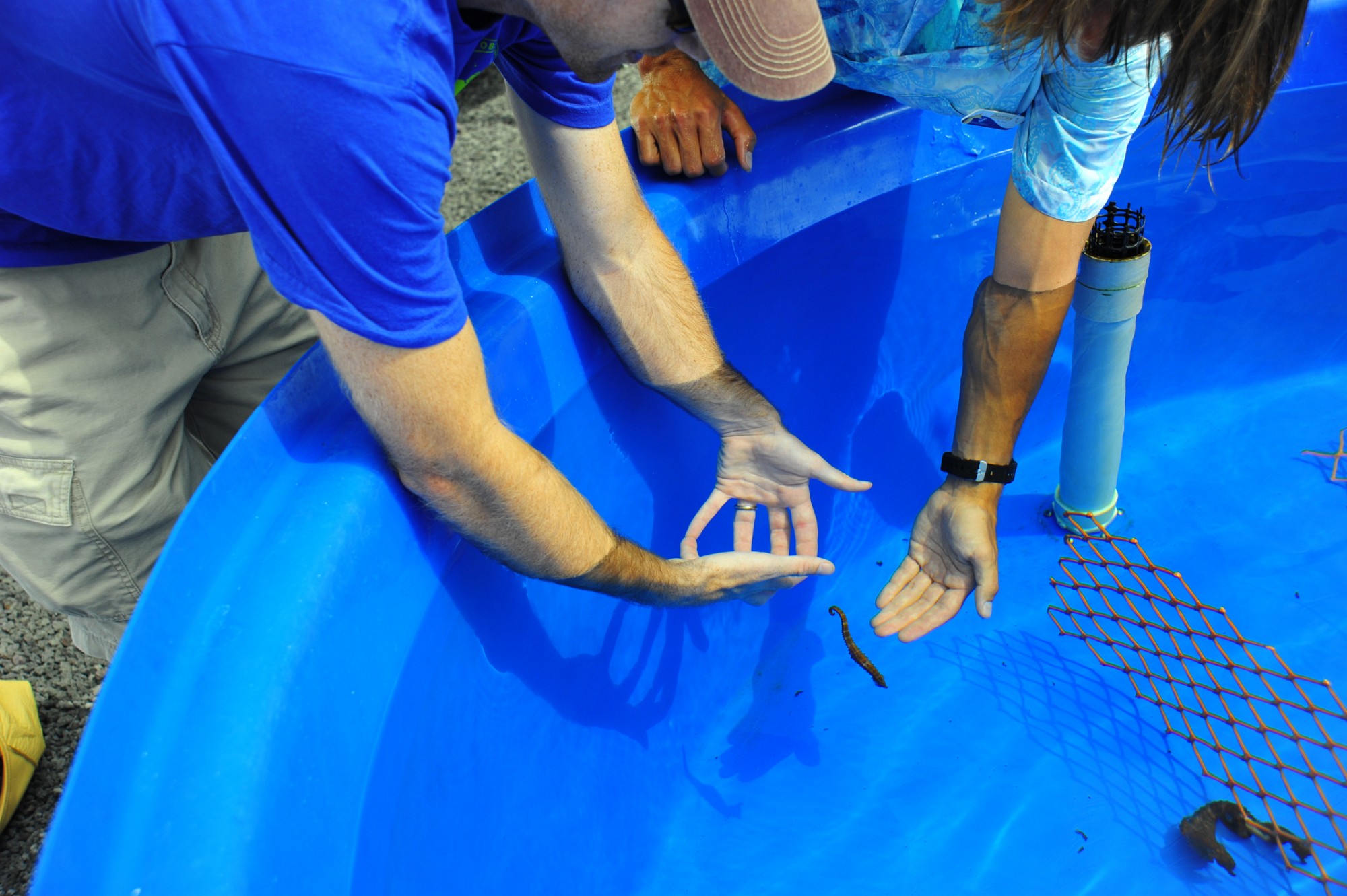 The sea monkeys are fed to much smaller baby sea horses.